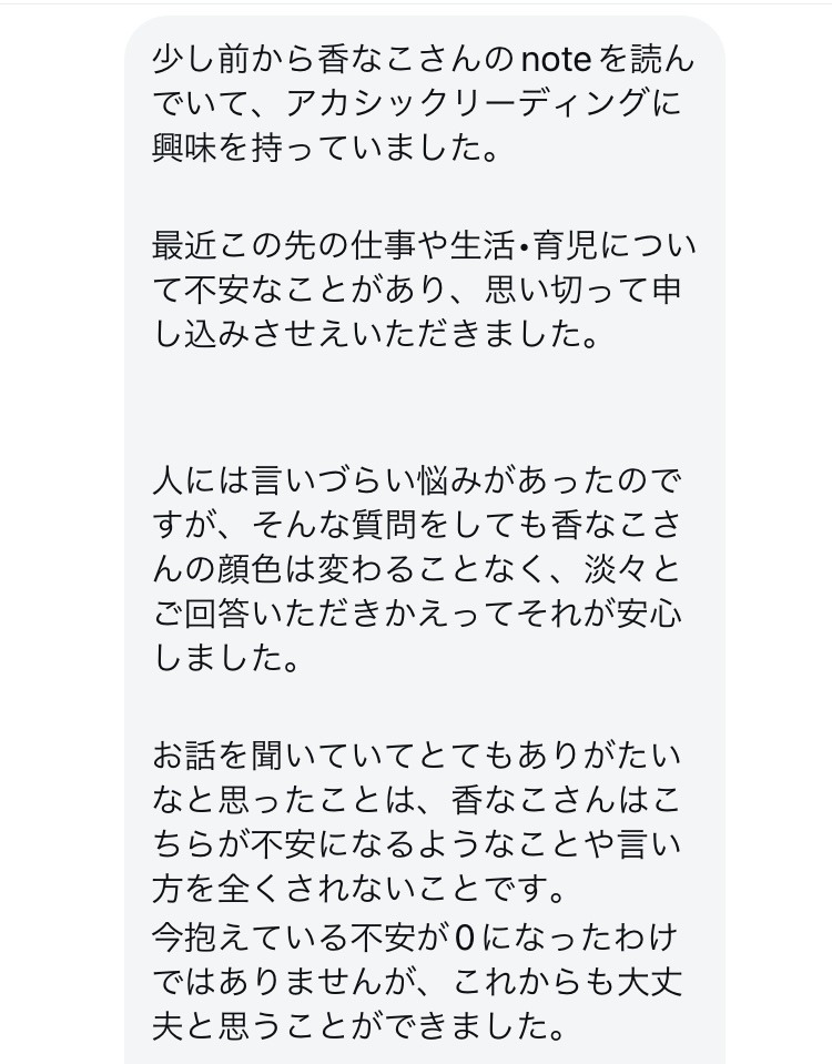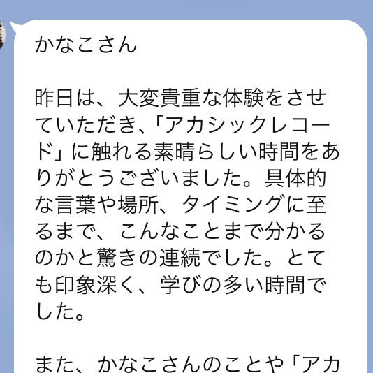 リーディングを始めていただく前に、注意事項やアカシックについてお話してくださって リラックスして受けさせていただくことができました🙏🌿✨